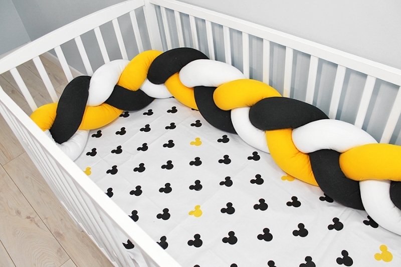 Baby Nellys Mantinel pletený cop s povlečením Mickey - bílá, žlutá, černá; 120x90