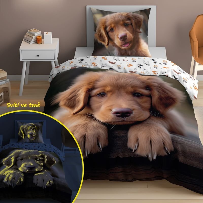 DETEXPOL Povlečení Štěně svítící Bavlna, 140/200, 70/80 cm