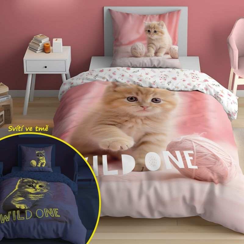 DETEXPOL Povlečení Kotě klubíčko svítící Bavlna, 140/200, 70/80 cm