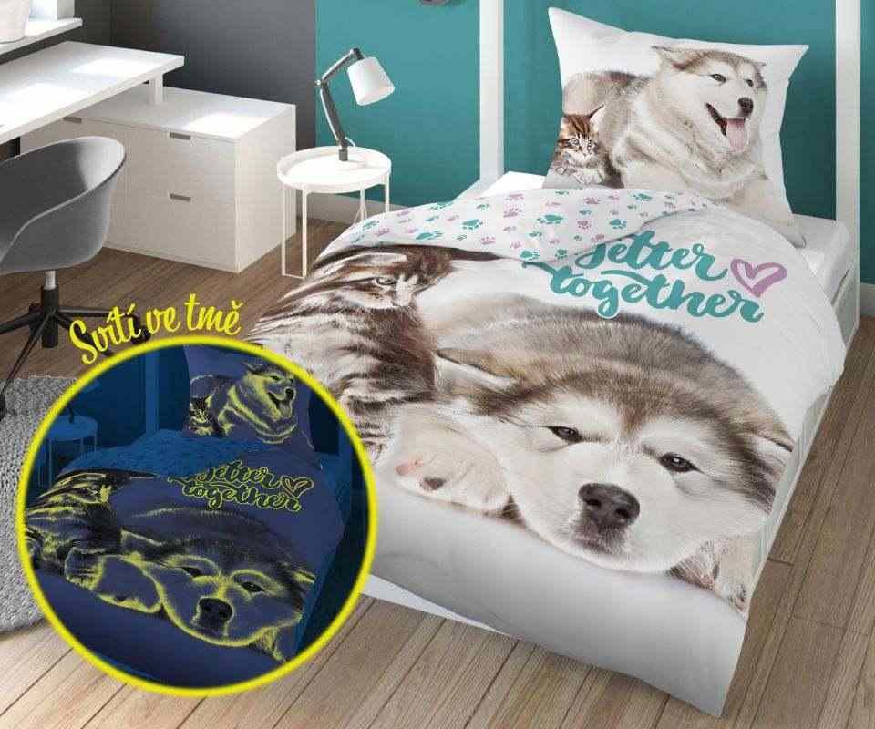 DETEXPOL Povlečení Kotě a Štěně Best Friends svítící Bavlna, 140/200, 70/80 cm