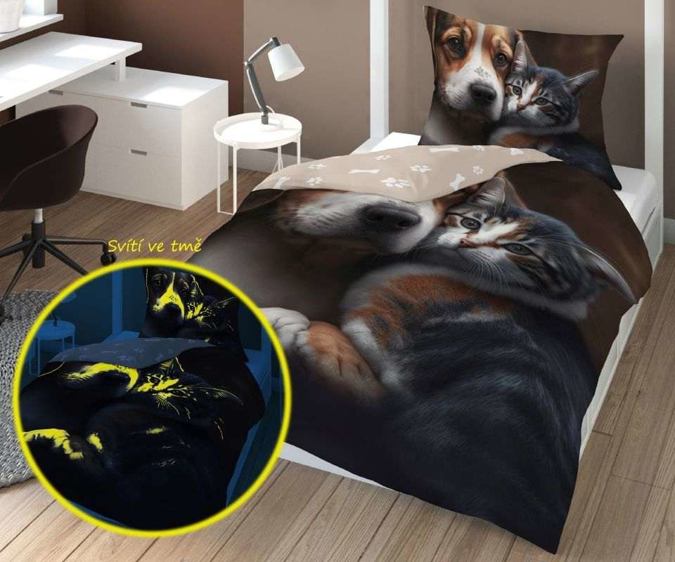 DETEXPOL povlečení Přátelé navždy nabízí nejen pohodlí, ale i zábavný a unikátní prvek díky svítícímu motivu. Tento design ocení zvláště milovníci originálních doplňků a ti, kdo chtějí mít svůj pokoj něco výjimečného.