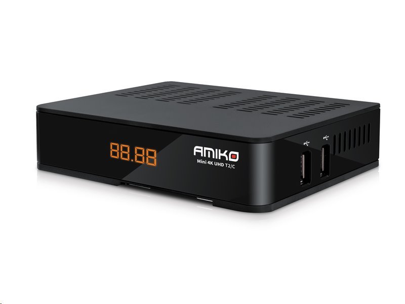 ULTRA HD 4K přijímač osvědčené značky AMIKO, se kterým získáte přístup k pozemnímu nebo kabelovému vysílání.