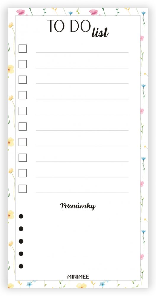 Udržte si přehled o svých úkolech stylově a prakticky! Tento trhací TO DO LIST s motivem lučního kvítí je skvělým pomocníkem pro organizaci každodenních povinností i poznámek.