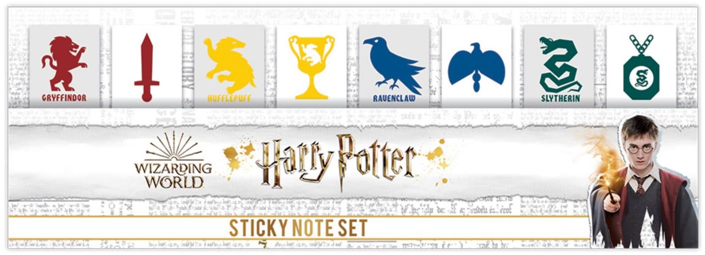 Tradiční označovací a poznámkové lepící štítky inspirované znaky ze ságy Harry Potter.