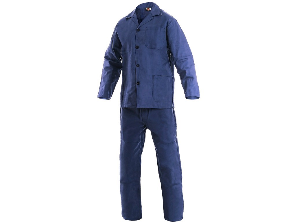 Pánská souprava, 3 přední kapsy u blůzy, kapsa na tužku, u kalhot zdvojená kolena, volný pas s tkanicí na stáhnutí, boční kapsa na metr. číst celé