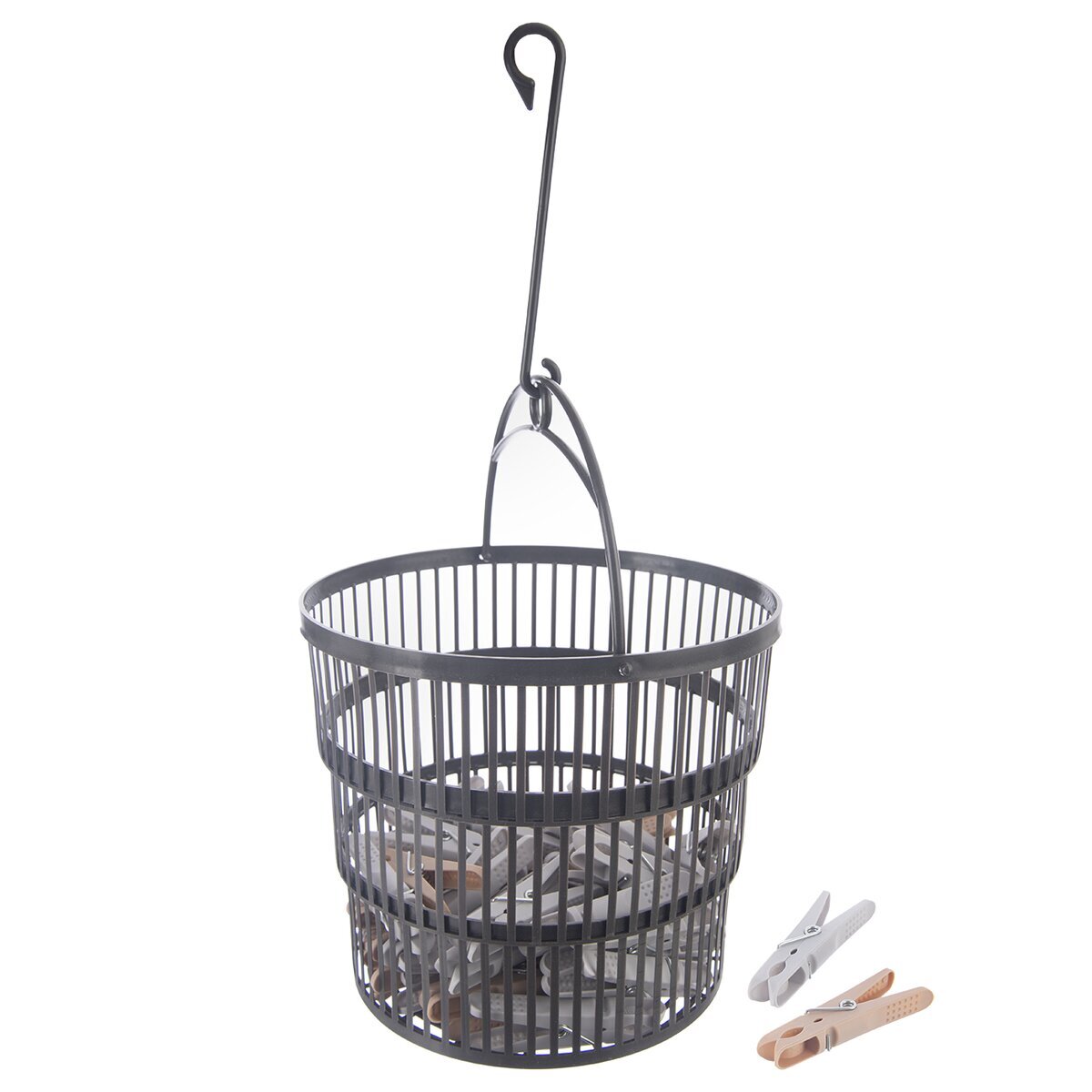 - Praktický košík s háčkem - snadné zavěšení na sušák či šňůru a všechny kolíčky pohromadě.