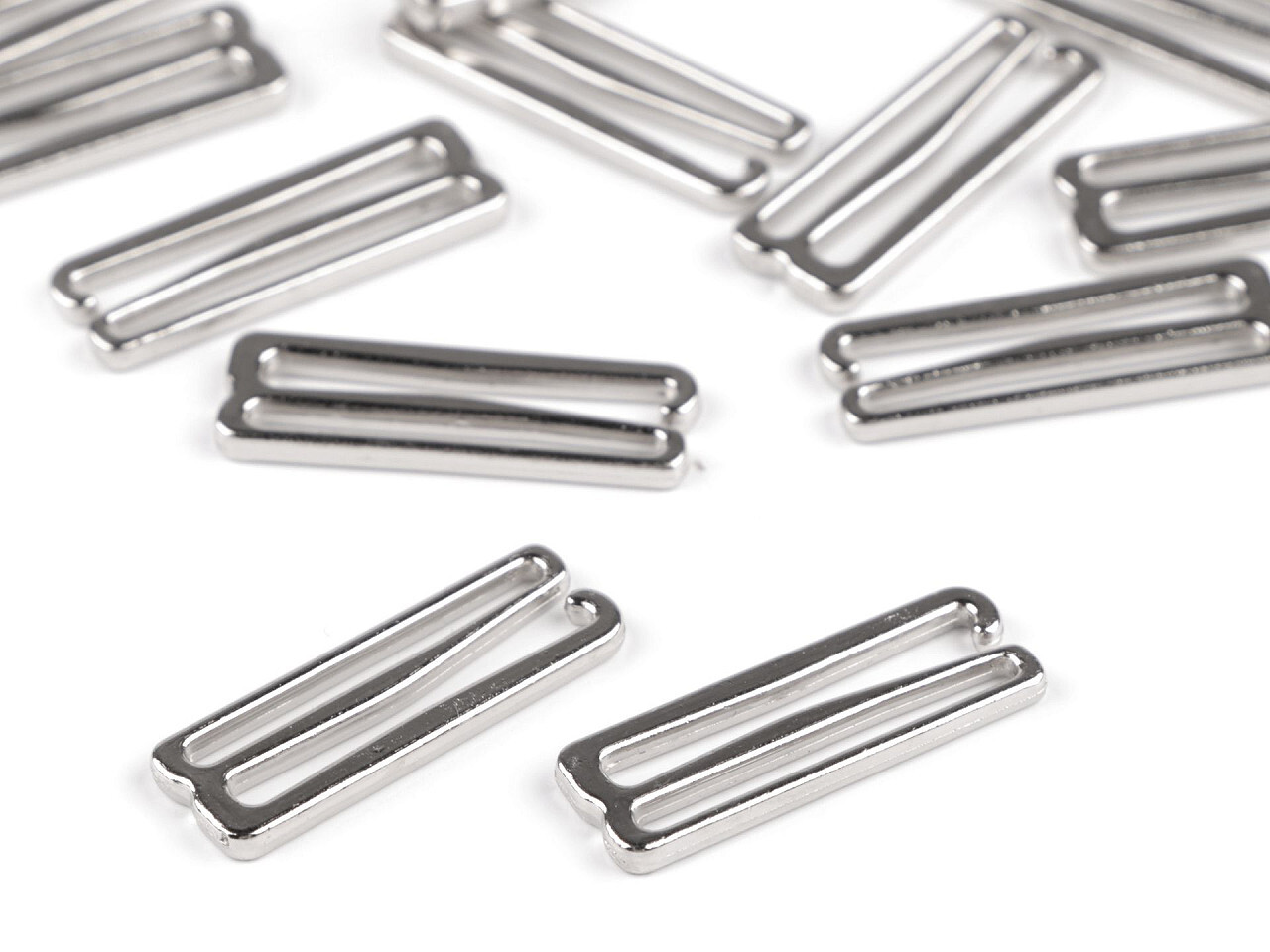 Háček a posunovač na prádlo šíře 25 mm kovový - 20 ks - 8 nikl háček