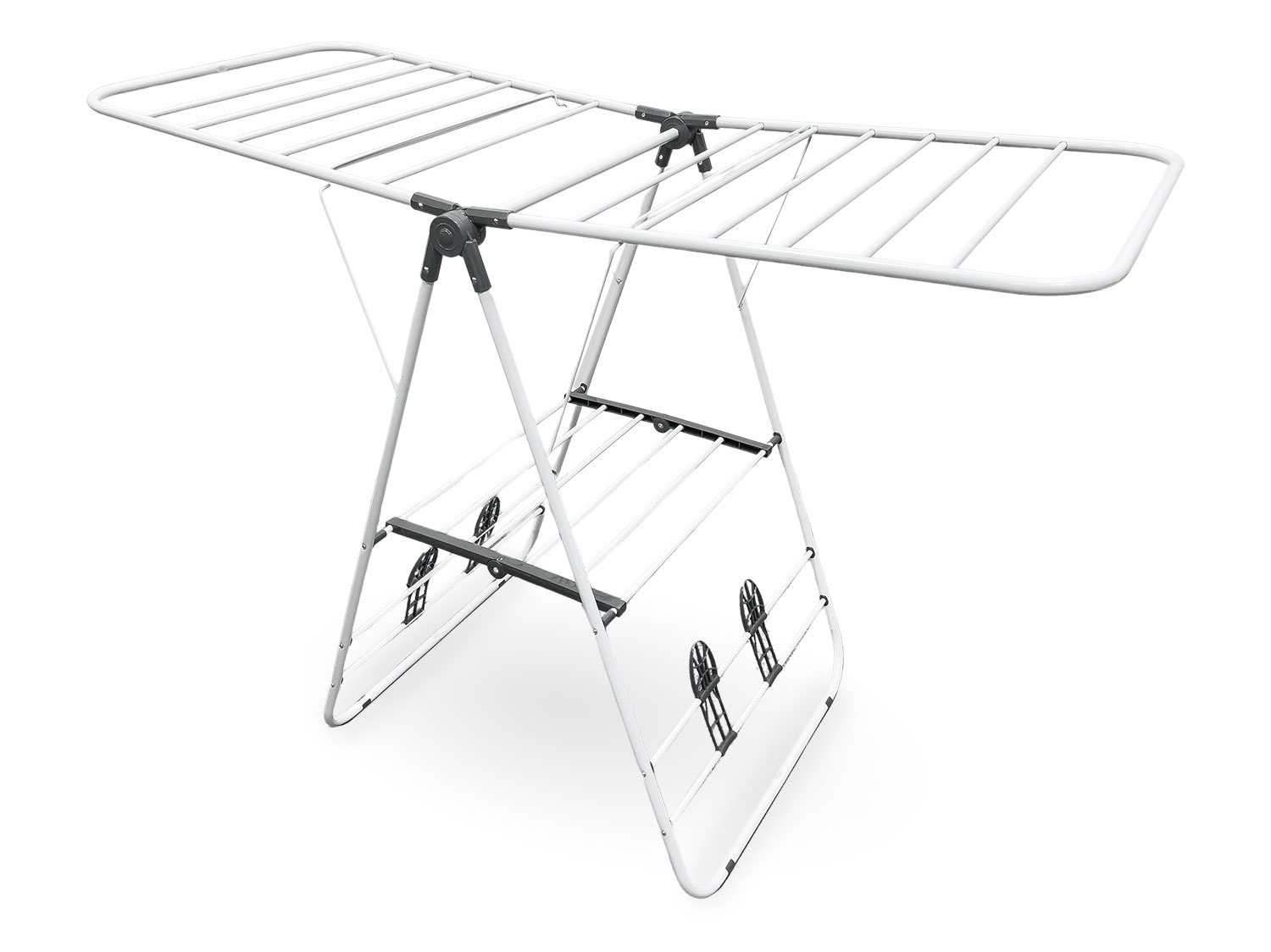 Balkonový sušák vyrobený výhradně z nerezové oceli s práškovým nástřikem. Extrémně odolné a funkční, lehké a pohodlné. Vybaven ochrannými překryvy, které dodatečně stabilizují polohu sušičky. Velmi snadné rozložení a složení. Sušící plocha je až 14 m, maximální zatížení 18 kg. Úhel sklonu křídel lze nastavit pomocí připevněných kovových dorazů. Sušička má přídavnou úroveň pro sušení prádla a držáků na boty, které lze v případě potřeby pohodlně vyjmout. Ideální pro sušení prádla uvnitř i venku. Je odolný vůči povětrnostním vlivům. Rozměry rozloženého sušáku 138 x 60 x 99 cm. Průměr trubek 16 mm / 9 mm. EAN 5908239665104