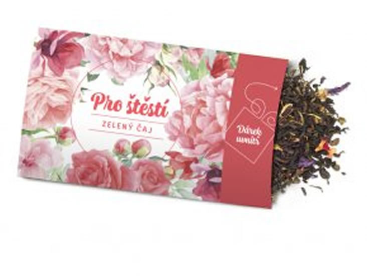 Přání ve tvaru obálky z tvrdého papíru s dárkem uvnitř. Rozměry: 18,5x11 cm. Obsah: zelený čaj 15g Složení: zelený čaj Sencha, jablko, šípek, brusinky