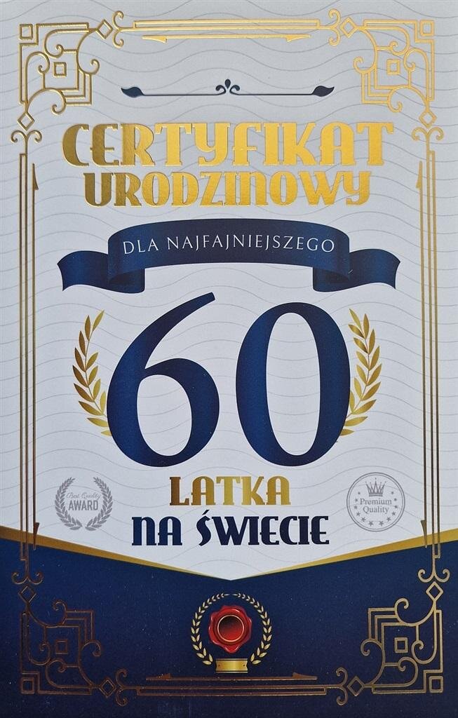 Karnet Certyfikat Urodzinowy 60 urodziny męskie