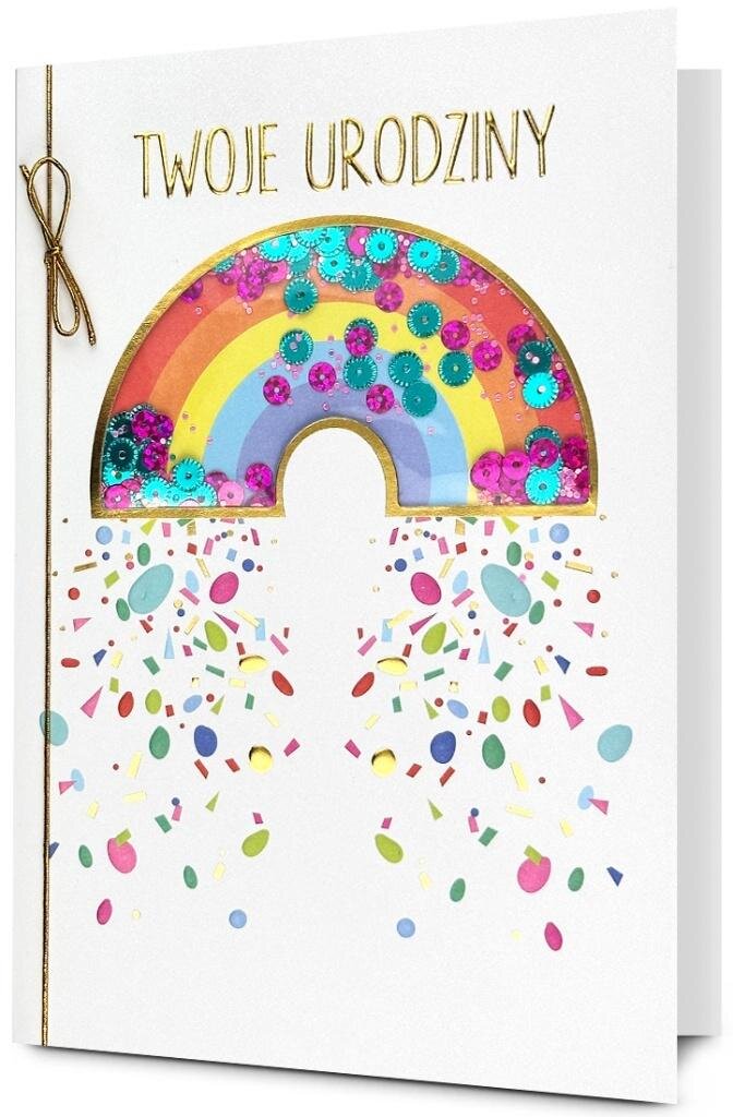 Kartka jest bogato i różnorodnie zdobiona (zależnie od wzoru: metaliczna folia, lakier perłowy, brokat, przyklejone elementy 3D - wypukłe wstawki papierowe, elementy biżuteryjne, tłoczenia).