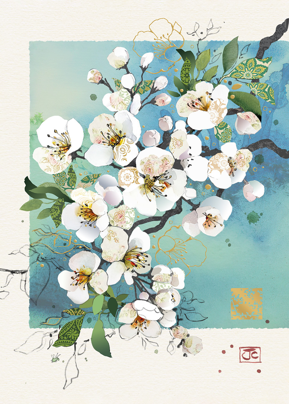Přední strana přání je embosovaná a nalisované fólie zvýrazňují plasticitu motivů Přání je baleno společně s obálkou v průhledné celofánové fólii