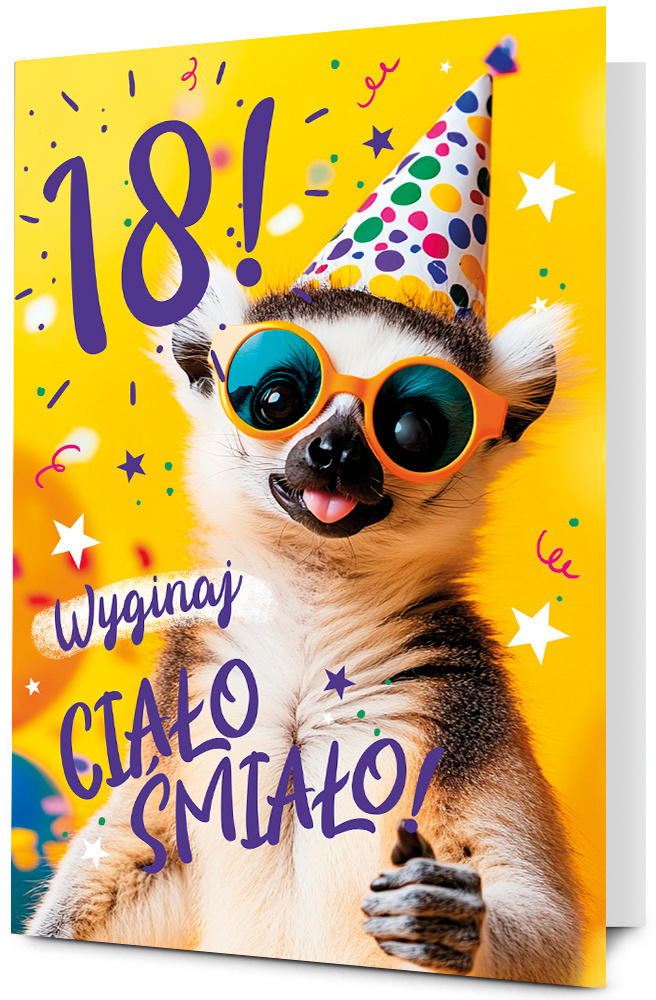 Karnet MEGA 18 Urodziny lemur (33x48cm) K.MEGA-126