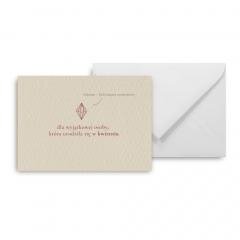 Kartka w komplecie z białą kopertą, co czyni ją gotowym do wręczenia prezentem