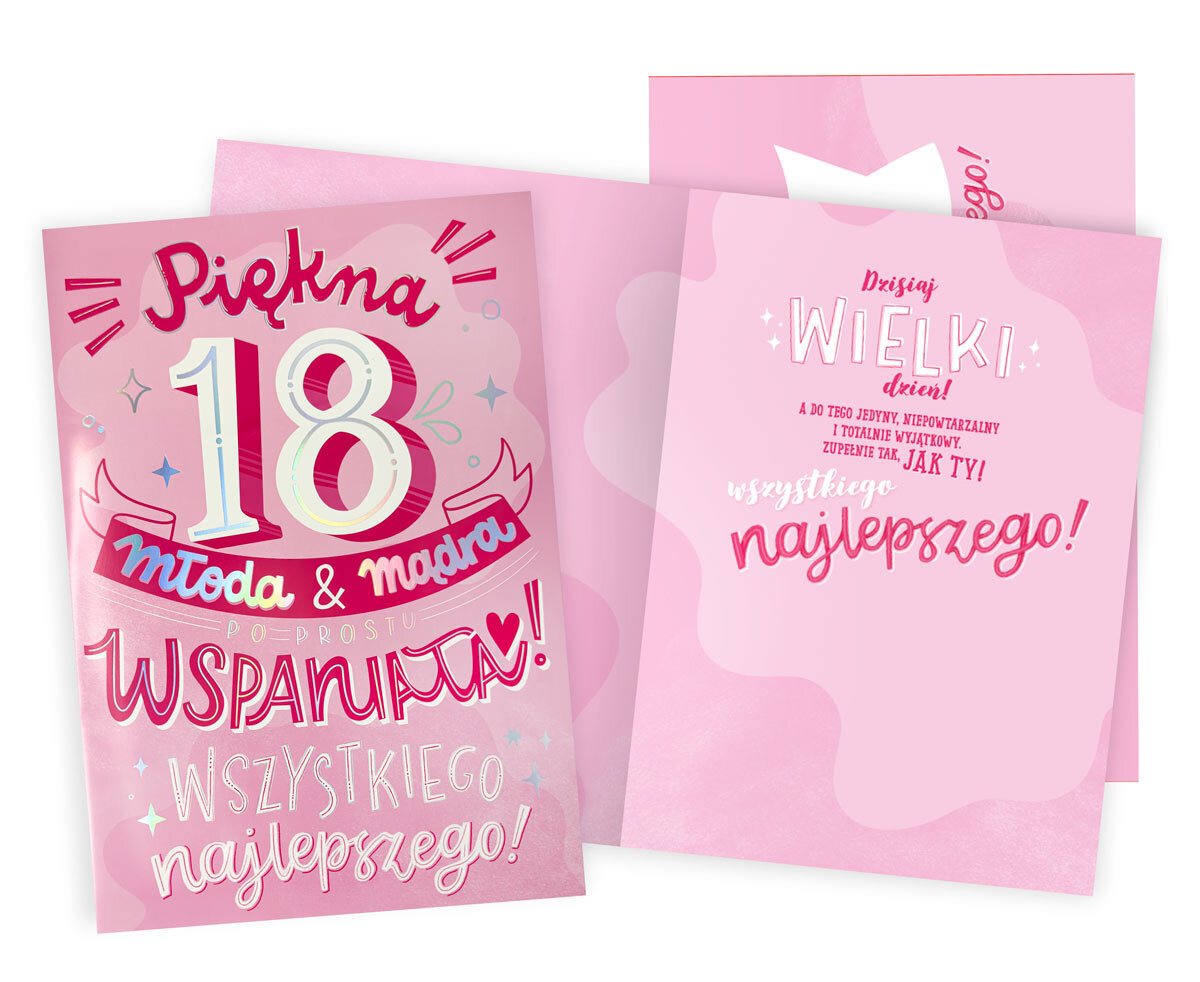 Karnet Gigant 18 Urodziny, różowy (34x48cm) GN-001