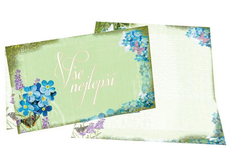 Přání A - Všechno nejlepší zelené s pomněnkou /8,5x15cm