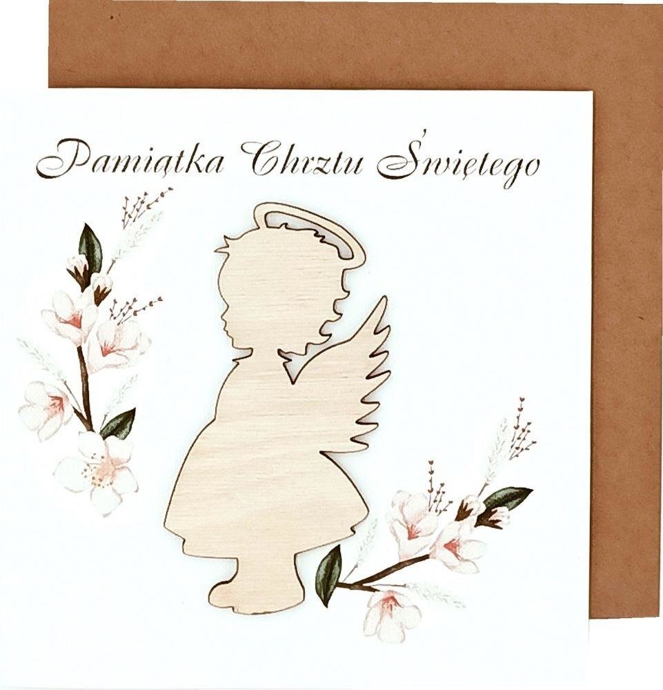 Kartka okolicznościowa z okazji Chrztu Świętego o treści: W podróży przez życie niech Cię zawsze Pan Bóg chroni i mocą Chrystusa przed pokusami obroni. Kochaj rodziców, by pociechę z Ciebie mieli, by radość w Tobie widzieli. Pamiętaj, że Bóg patrzy na Ciebie. W Dniu chrztu Świętego?