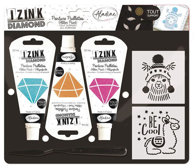 Kreativní sada s diamantovými barvami. Vyjímečně třpytivé barvy se nanáší špachtlí přes šablonu. Jsou vhodné na papír, textil, kov, i plast: jsou ideální k dekoraci přáníček, deníků, triček, tenisek, kšiltovek, ale i penálků a dalších předmětů. Sada obsahuje 3 ks barev, 2 šablony a špachtli. číst celé