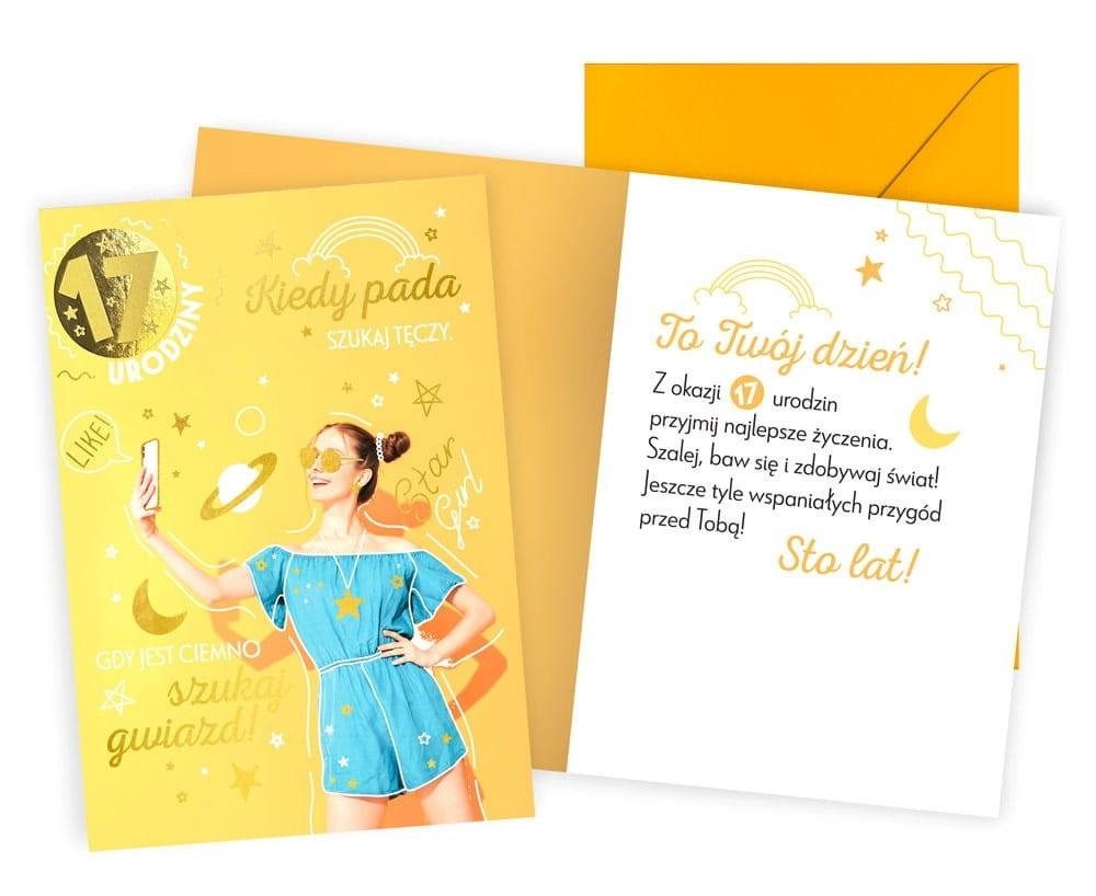 W powiększonym tzw. Angielskim formacie 140x190 mm. Wykonany z niezwykłą dbałością o szczegóły, zdobiony. Wewnątrz znajduje się tekst życzeń, a całość uzupełnia dopasowana kolorystycznie koperta. okazja: Urodziny
