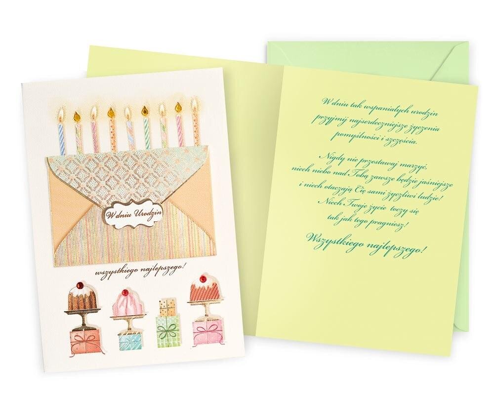 Kartka B6 z ozdobnej serii Dream Cards na urodziny - nieduża, ale robi wrażenie dzięki atrakcyjnej kolorystyce i ciekawym zdobieniom.