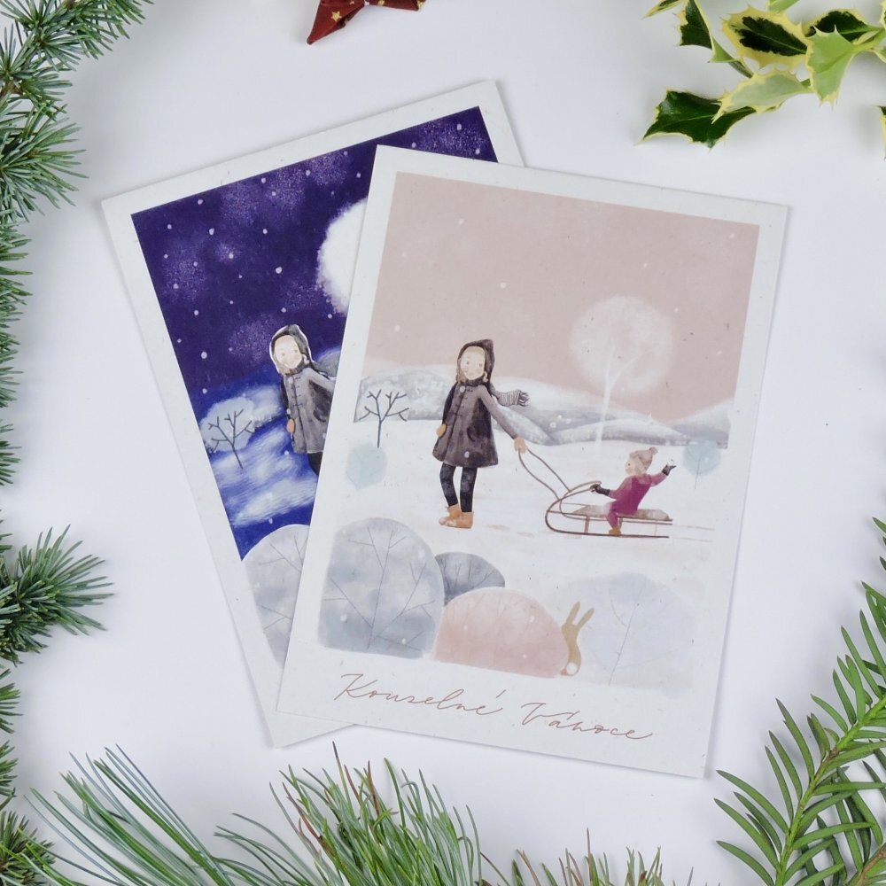 Autorské ilustrace jsou inspirovány zasněženou českou krajinou v období Vánoc.