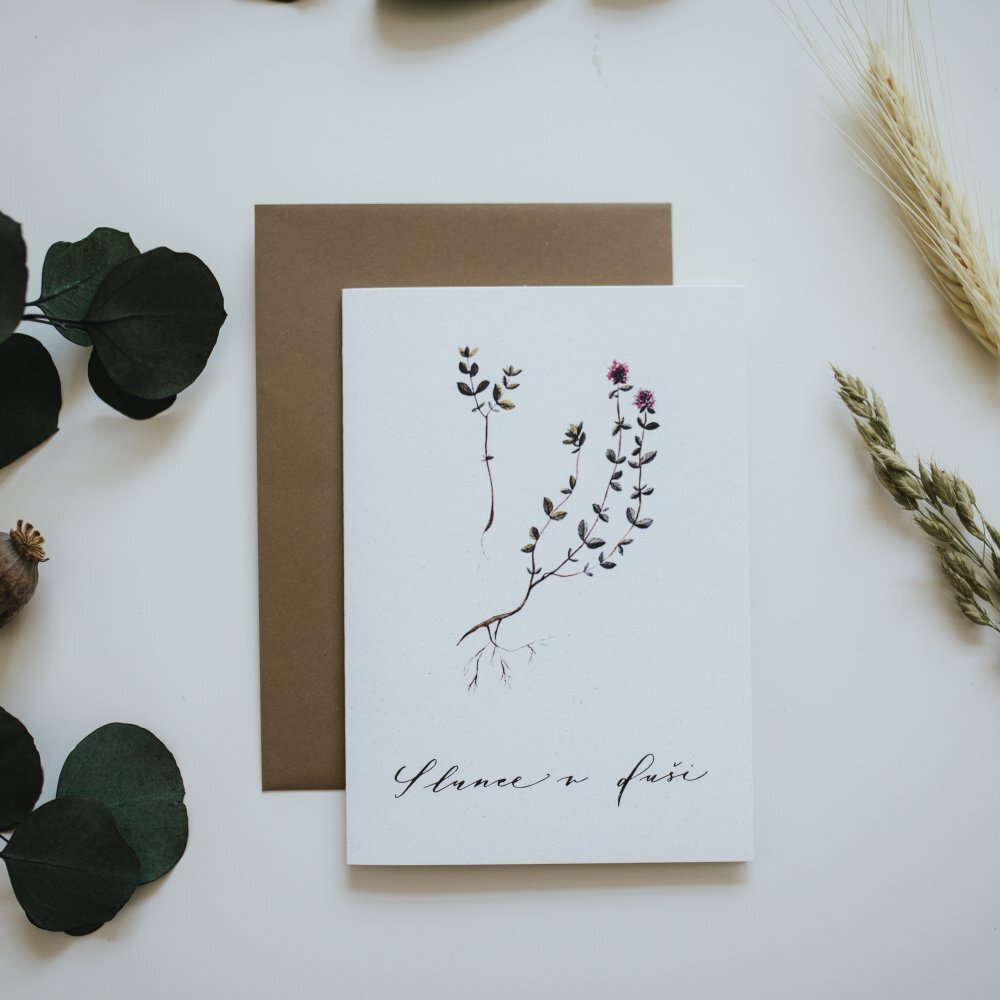 Přání ilustrovala česká výtvarnice Bára z Nikolajky. Inspirací ji byla česká bylinka mateřídouška, která je blahodárná pro zdraví každého z nás. Doplňující text je napsán krasopísmem.