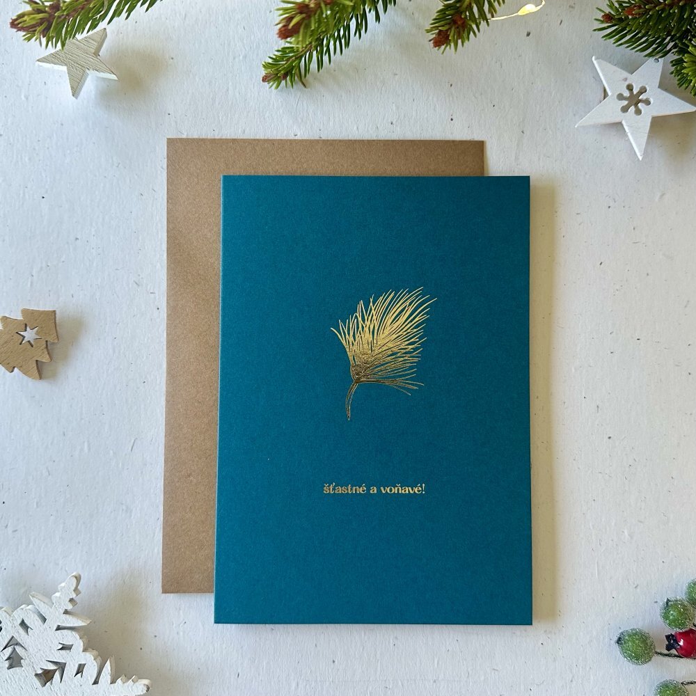 Be Nice Eko vánoční přání s obálkou - V jehličí petrolejové