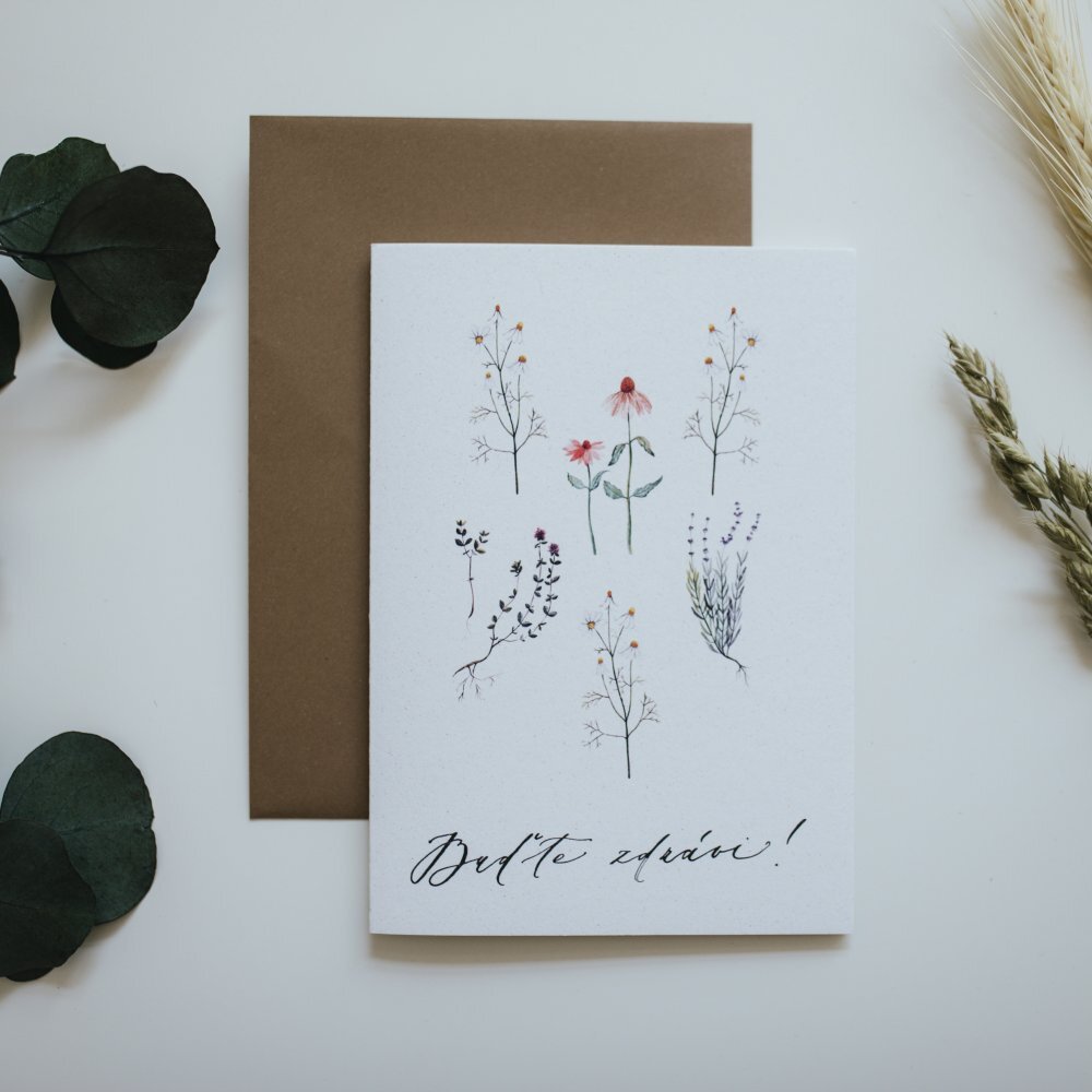 Toto jedinečné přání bylo navrženo českou výtvarnicí Bárou z Nikolajky, jejíž tvorba je inspirována blahodárnou silou českých bylinek. Doplňky jsou napsány jemným a elegantním krasopísmem, což přináší celku osobitý a vkusný vzhled. Přání je zcela čisté uvnitř, takže můžete napsat vlastní, osobní vzkaz přesně podle srdce.