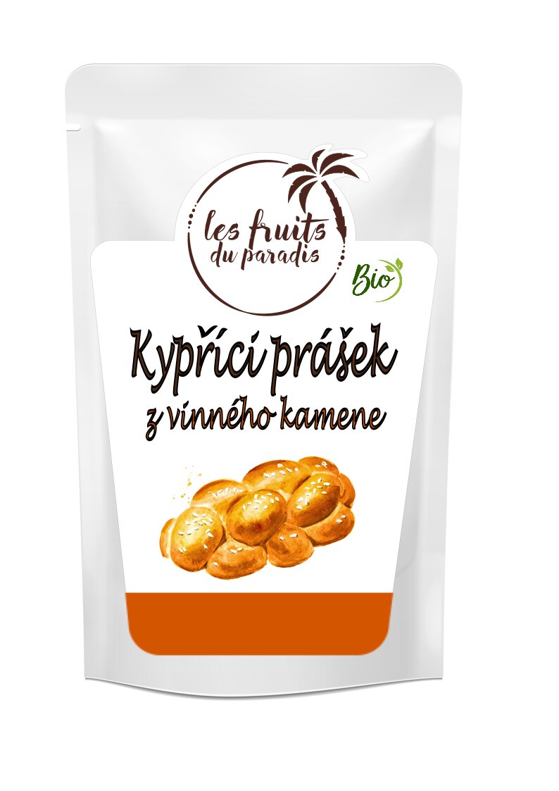 Kypřící prášek z vinného kamene BIO od LES FRUITS DU PARADIS je šetrný a efektivní pomocník do vaší kuchyně. Vinný kámen, přirozeně vzniklý při zrání vína při nízkých teplotách, je klíčovou složkou, která zajišťuje dokonalé kypření těsta. V kombinaci s jedlou sodou působí velmi účinně, díky čemuž bude vaše těsto krásně nadýchané a lehké.