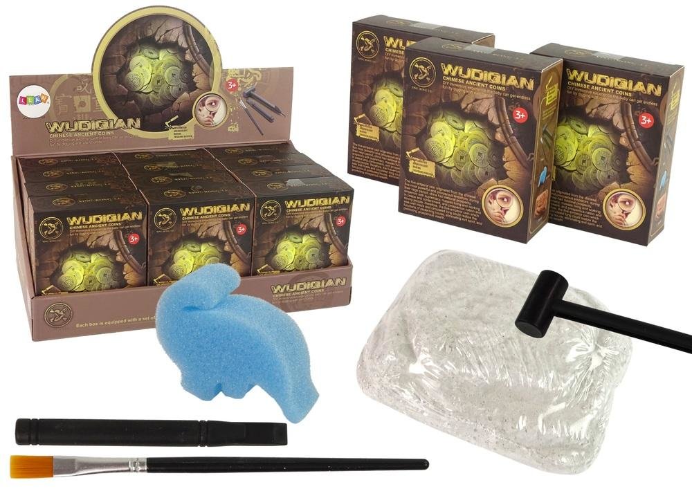 Zestaw Wykopaliska Poszukiwanie Skarbów Monety Chińskich Cesarzy Dociekliwość i chęć poznawania przeszłości to cechy dziecka? Interesuje się archeologią i odkrywaniem? To właśnie to jest zabawka dla niego. Zestaw małego archeologa, odkryje przed nim starożytne monety pięciu chińskich cesarzy, która spełniała funkcje ochrony domu, eliminowania złego ducha i sprzyjała bogactwu. Dzięki monetom możesz odkryć i poznać historię Chin. W środku znajdują się stare monety wudiqian, które można nazwać skarbem, spróbuj je odkopać. Cała zabawa rozwinie precyzję malucha i zdolności manualne, a z wszystkich modeli może stworzyć kolekcję. Elementy zestawu: -monety - 1 dłuto - pędzelek - młoteczek - gips - gąbeczka Wymiary gipsu: 10 cm x 8 cm x 3 cm Wymiary opakowania: 14 cm x 12 cm x 5 cm Przeznaczona dla dzieci powyżej 3 roku życia. Zgodna z normą EN71.