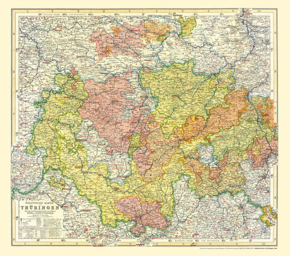 Politische Karte von THÜRINGEN - Herzogtümer und Fürstentümer 1904 (německy)