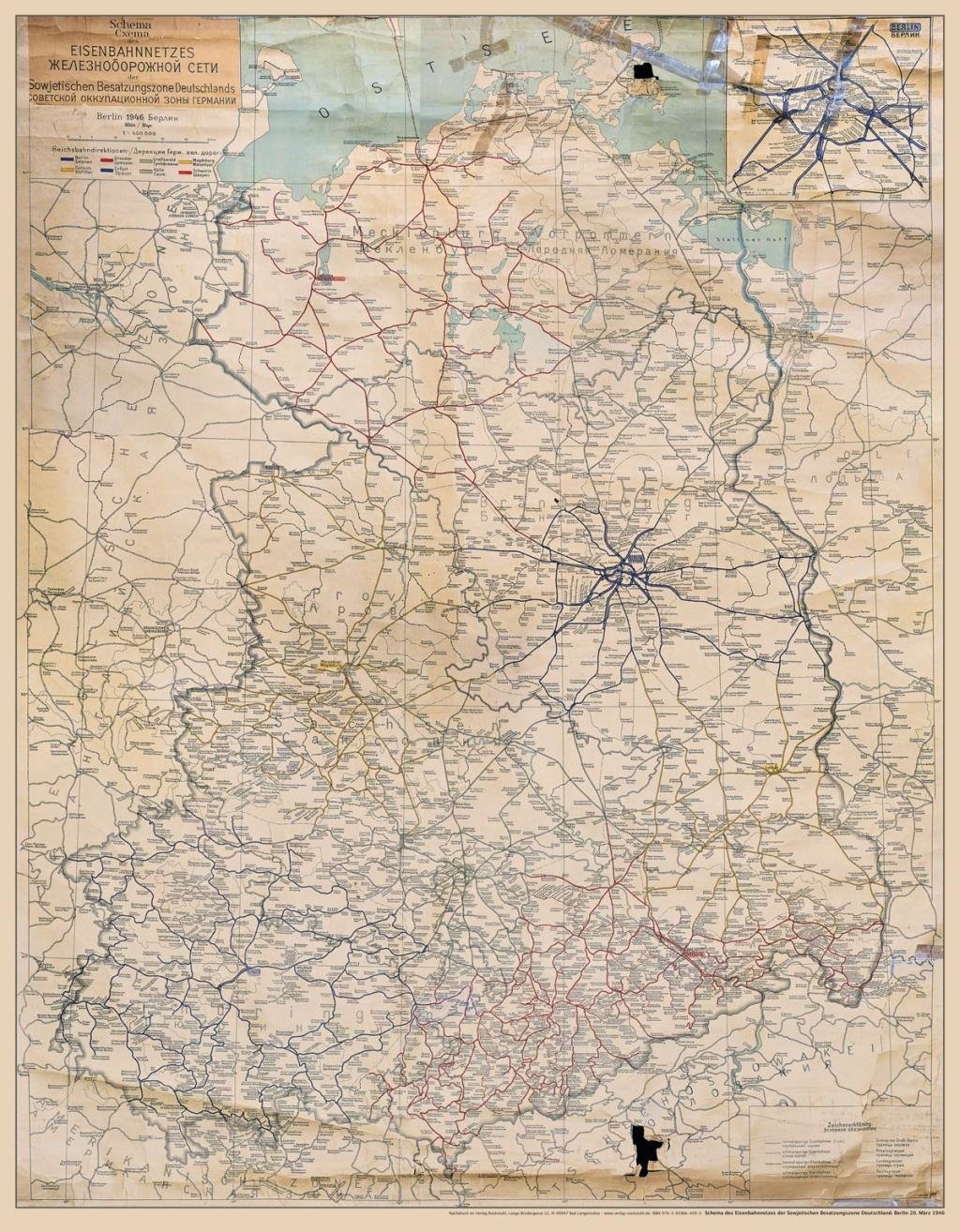 ÜBERSICHTSKARTE Deusche Reichsbahn (DR) im März 1946 - Eisenbahnnetz der SOWJETISCHEN BESATZUNGSZONE Deutschlands - gerollt