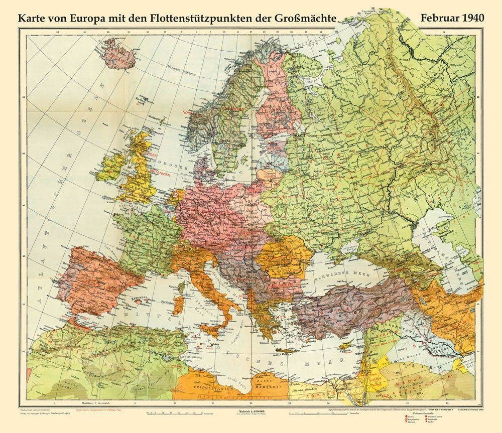 Historische Karte: EUROPA im Februar 1940 (gerollt) (německy)