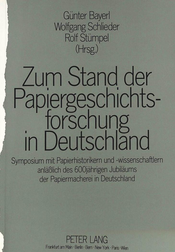 Zum Stand der Papiergeschichtsforschung in Deutschland