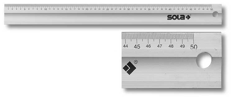 SOLA - LAB 500 - Pracovní pravítko 500mm Vlastnosti:Lehké, robustní pracovní pravítko s ergonomickým zahloubením pro úchopVelmi dobrá čitelnost výsledků měření díky zvýšenému kontrastuRobustní hliníkový profil Technická data: Materiál: HliníkPovrch: EloxovanýBarva: StříbrnáZvláštnosti: Zahloubení pro úchopStupnice: mm/cm, jednodílná, s potiskemDílky stupnice: 1 mmŠířka: 50 mmTloušťka: 5 mm