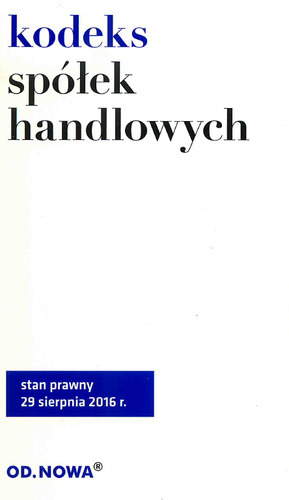 Najnowsza aktualizacja kodeksu spółek handlowych. Publikacja zawiera tekst jednolity kodeksu. Zaletą książki jest jej praktyczny, poręczny format, przejrzysty układ graficzny i niska cena. Łatwą orientację w materiale umożliwia obszerny skorowidz. Zmiany oczekujące na wejście w życie umieszczono...