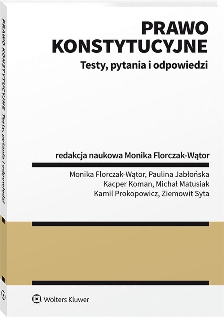 zy chcesz sprawdzić swoją wiedzę z poszczególnych obszarów prawa konstytucyjnego? Ta książka jest dla Ciebie! Znajdziesz tu: -pytania testowe (3 warianty odpowiedzi, test wielokrotnego wyboru), -pytania otwarte, -przykładowy zestaw egzaminacyjny obejmujący pytania testowe, pytanie otwarte oraz kazus. Do testów dołączono odpowiedzi, a podpowiedzi do pytań otwartych pozwalają zweryfikować dotychczasowe postępy w przyswajaniu wiedzy z zakresu prawa konstytucyjnego, a także skontrolować poprawność udzielanych odpowiedzi z wymaganiami egzaminacyjnymi. Podział publikacji na rozdziały umożliwi Ci korzystanie z niej zarówno podczas stopniowego zdobywania wiedzy w ciągu roku akademickiego, jak i w ramach kilkudniowej powtórki przed egzaminem. Tematyka testów i pytań otwartych obejmuje Konstytucję RP i akty normatywne omawiane w ramach uniwersyteckiego kursu prawa konstytucyjnego. Książka stanowi uzupełnienie podręczników akademickich oraz innych materiałów do nauki prawa konstytucyjnego.