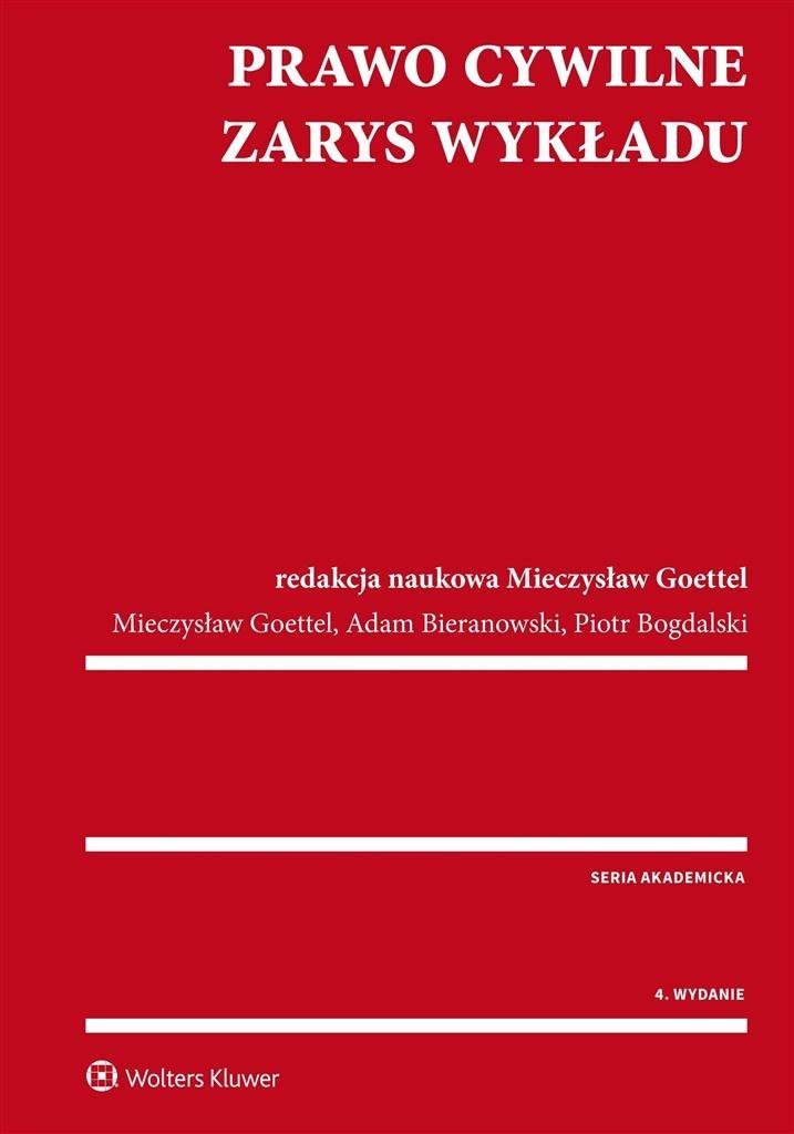 Publikacja zawiera zwięzłe omówienie najważniejszych instytucji prawa cywilnego, które stanowią materię jego podstawowych działów: części ogólnej, prawa rzeczowego, prawa zobowiązań, prawa spadkowego oraz prawa rodzinnego. Czwarte wydanie podręcznika uwzględnia ostatnie nowelizacje kodeksu cywilnego, kodeksu rodzinnego i opiekuńczego, jak również przepisów szczególnych odnoszących się do zagadnień cywilnoprawnych. Na uwagę zasługują przede wszystkim zmiany stanu prawnego w zakresie: form czynności prawnych, nabycia własności przez znalezienie, ochrony praw konsumenta, odpowiedzialności za wady rzeczy sprzedanej, odpowiedzialności za długi spadkowe, europejskiego poświadczenia spadkowego, rozstrzygnięć w przedmiocie władzy rodzicielskiej i kontaktów z dzieckiem w wyroku rozwodowym, sposobów ustalenia ojcostwa w następstwie wydania przepisów dotyczących tzw. metody zapłodnienia in vitro, zasad umieszczania dziecka w pieczy zastępczej. Adresaci: Podręcznik jest przeznaczony przede wszystkim dla studentów kierunków administracji na wydziałach prawa i administracji uniwersytetów oraz na innych wydziałach lub uczelniach, a także dla studentów studiów podyplomowych (absolwentów kierunków nieprawniczych), których programy zawierają podstawy prawa cywilnego.