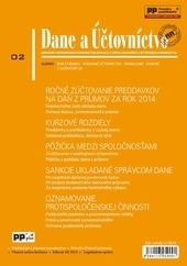 Dane a účtovníctvo 2/2015 obsahuje: Ročné zúčtovanie preddavkov na daň z príjmov fyzických osôb za rok 2014, Sankcie ukladané správcom dane, Zmeny v Zákonníku práce od 1. 1. 2015 súvisiace s opatreniami pri oznamovaní protispoločenskej činnosti ...