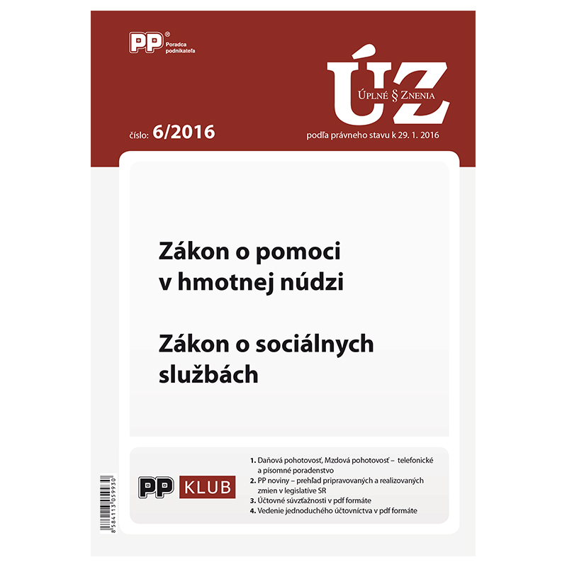 Publikácia obsahuje nasledovné témy: Zákon o pomoci v hmotnej núdzi, Zákon o sociálnych službách podľa právneho stavu k 29. 1. 2016.