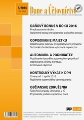 Publikácia obsahuje nasledovné témy: Daňový bonus v roku 2016, Novinky v zdaňovaní príjmov od 1. 1. 2016 5. časť Odpisy, Automobil a výdavky podnikateľa, Kontrolný výkaz k DPH - zmena od 1. 1. 2016, Účtovanie občianskych združení v sústave JÚ...