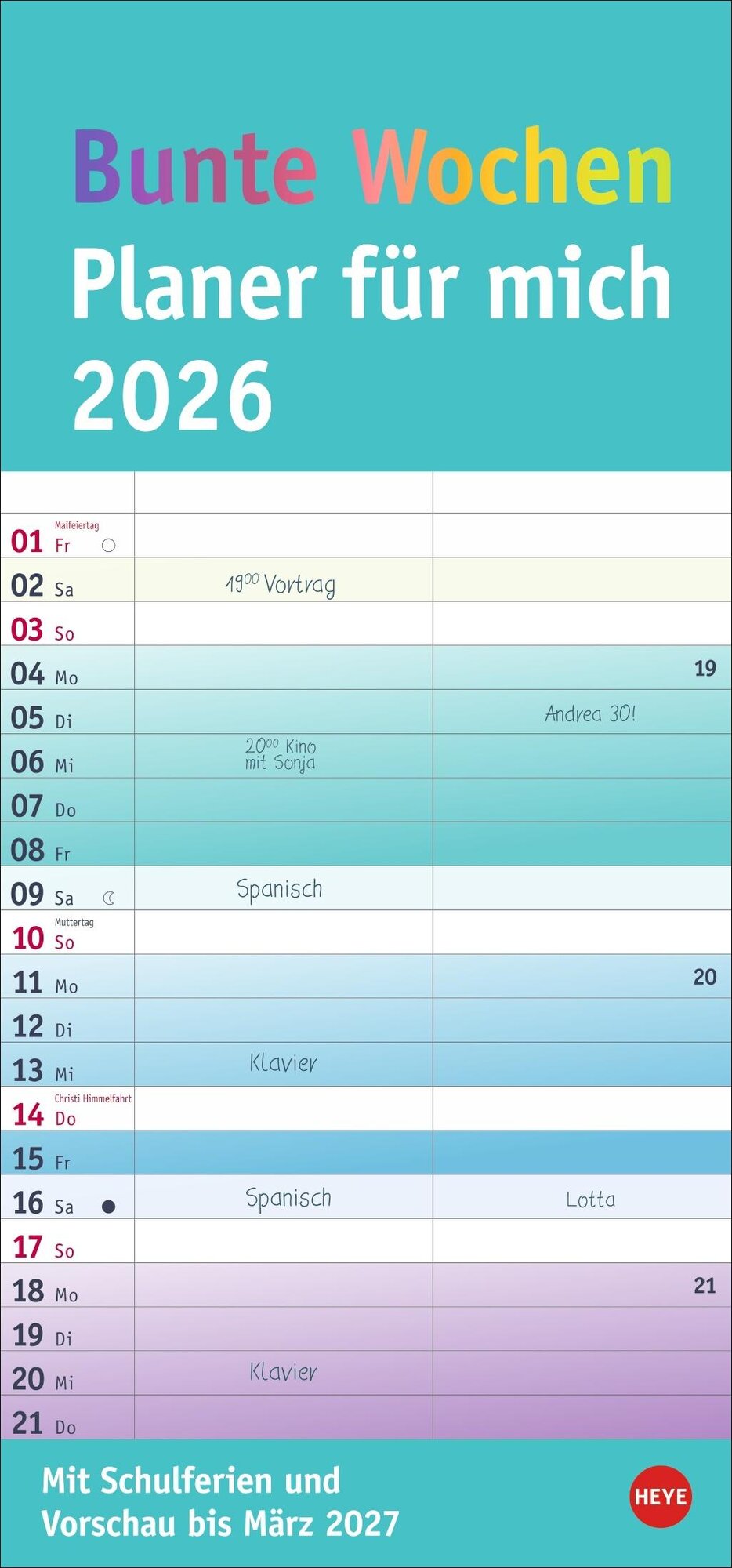 Bunte Wochen Planer für mich 2026 (německy)