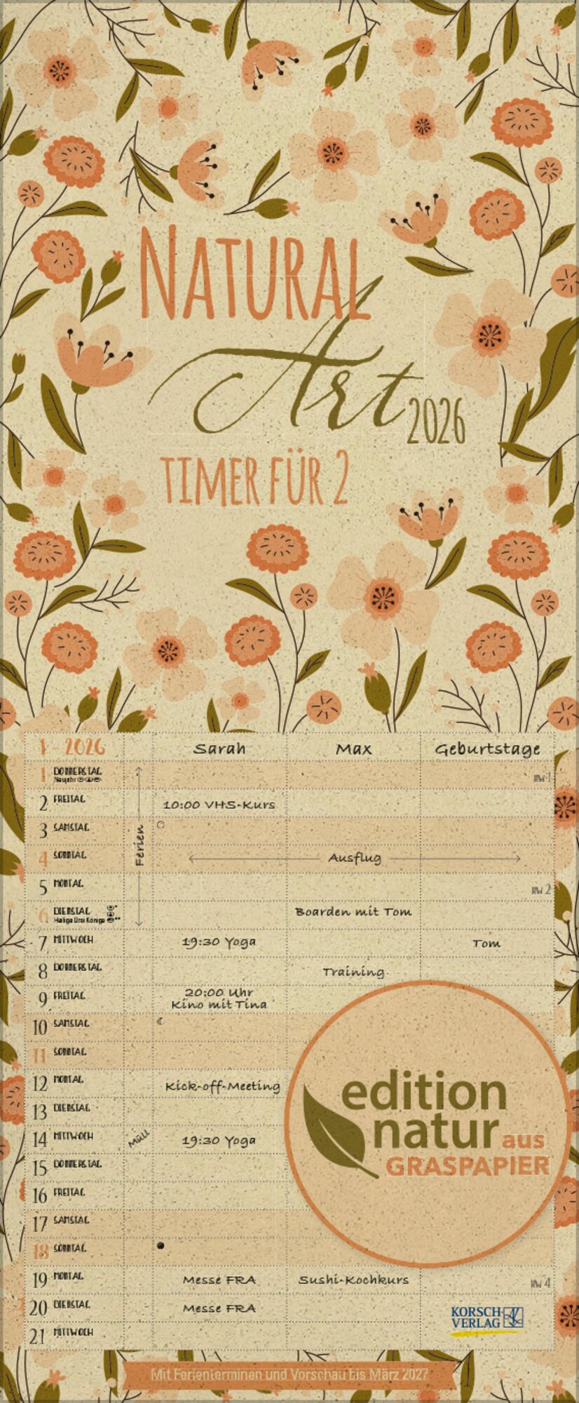 Natural Art Timer für 2 Graspapier 2026 (německy)