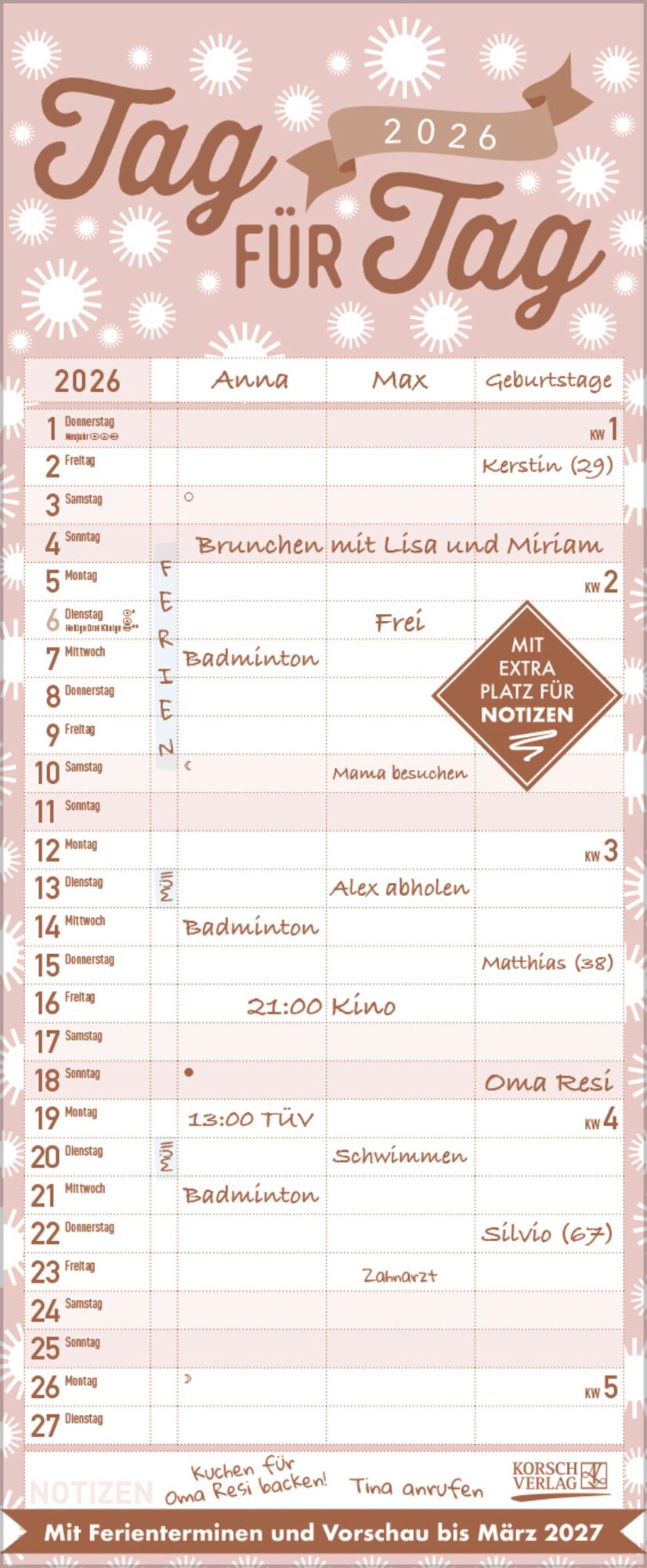 Premium Familientimer Tag für Tag 2026