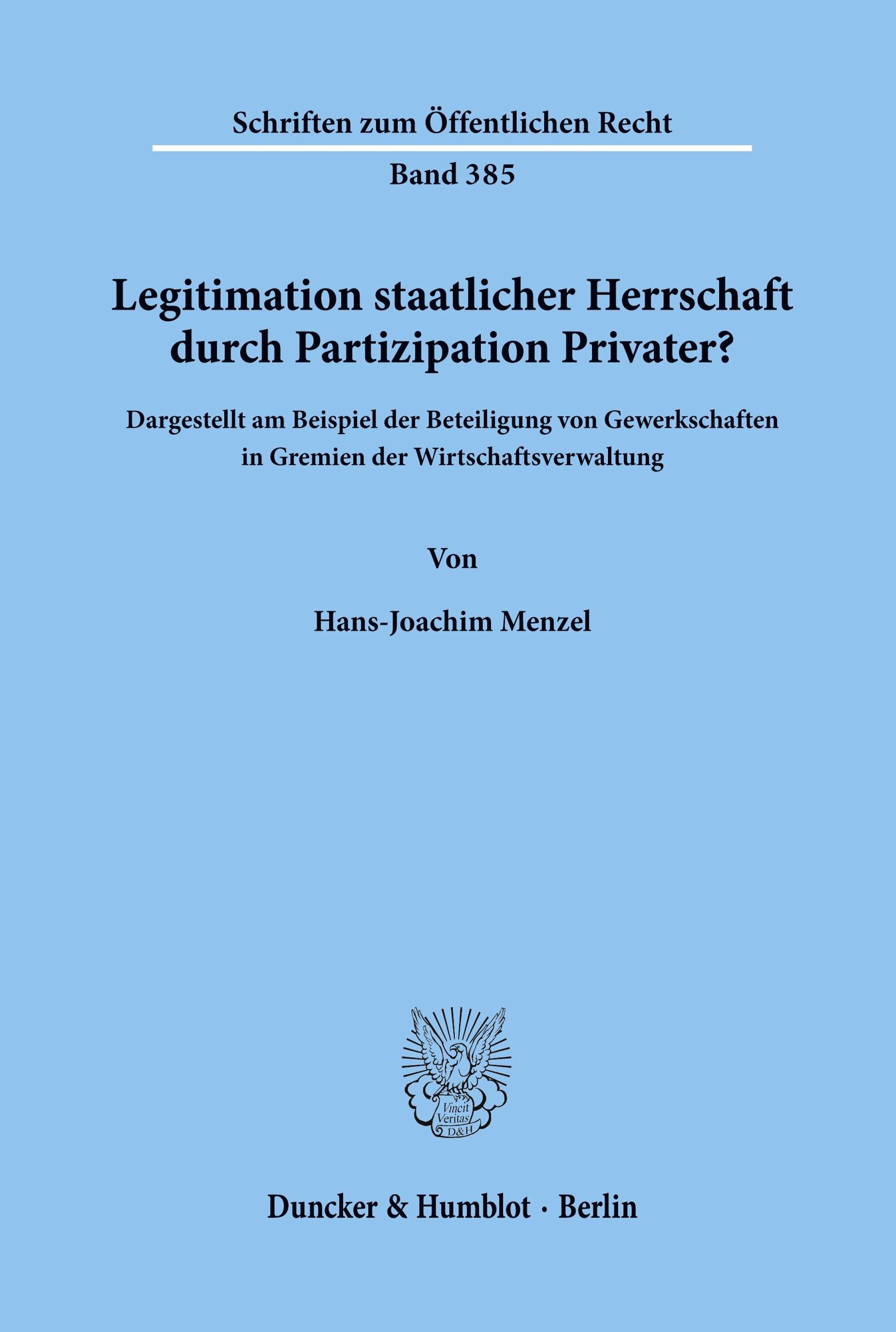 Legitimation staatlicher Herrschaft durch Partizipation Privater? (německy)
