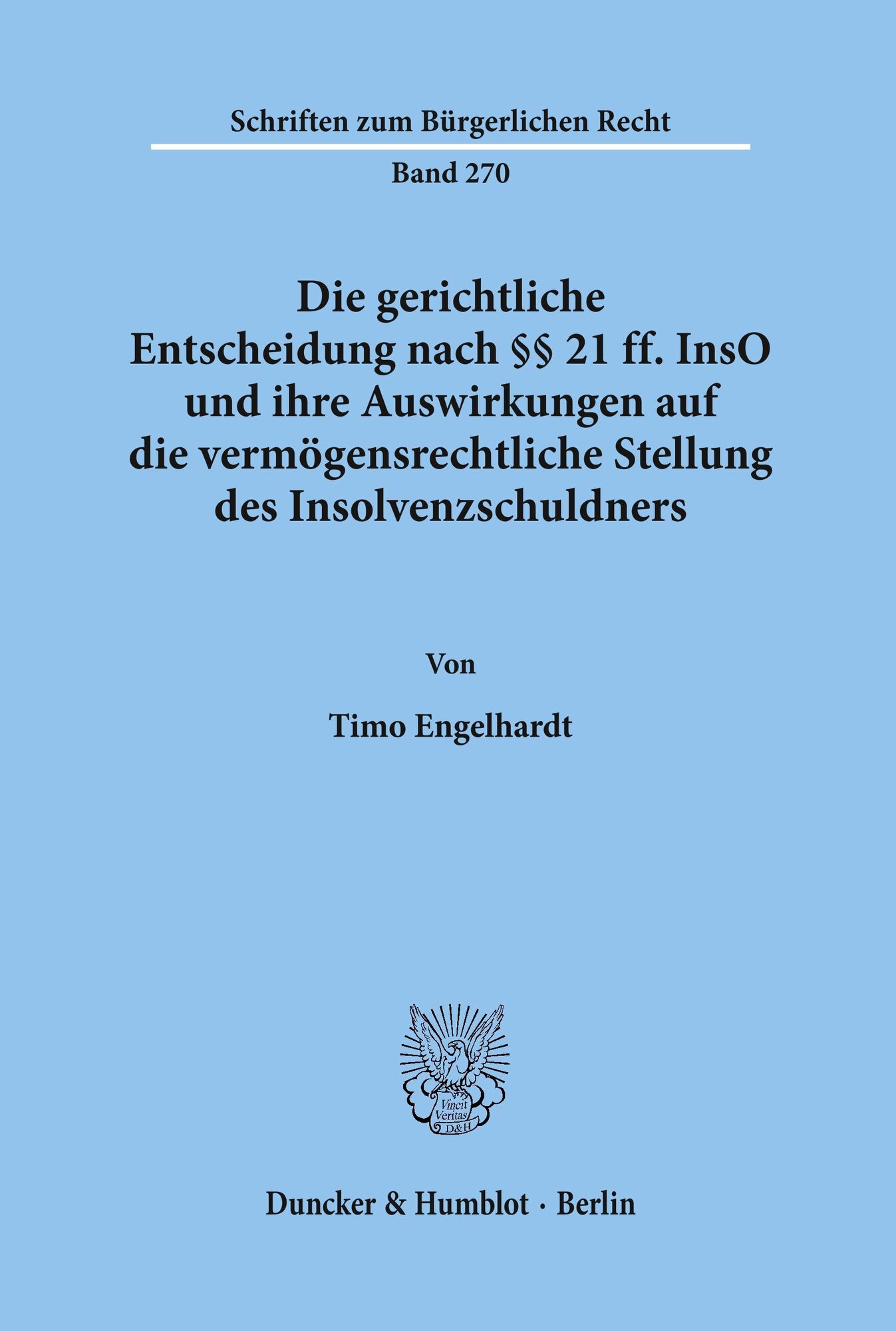 Die gerichtliche Entscheidung nach §§ 21 ff. InsO und ihre Auswirkungen auf die vermögensrechtliche Stellung des Insolvenzschuld (německy)