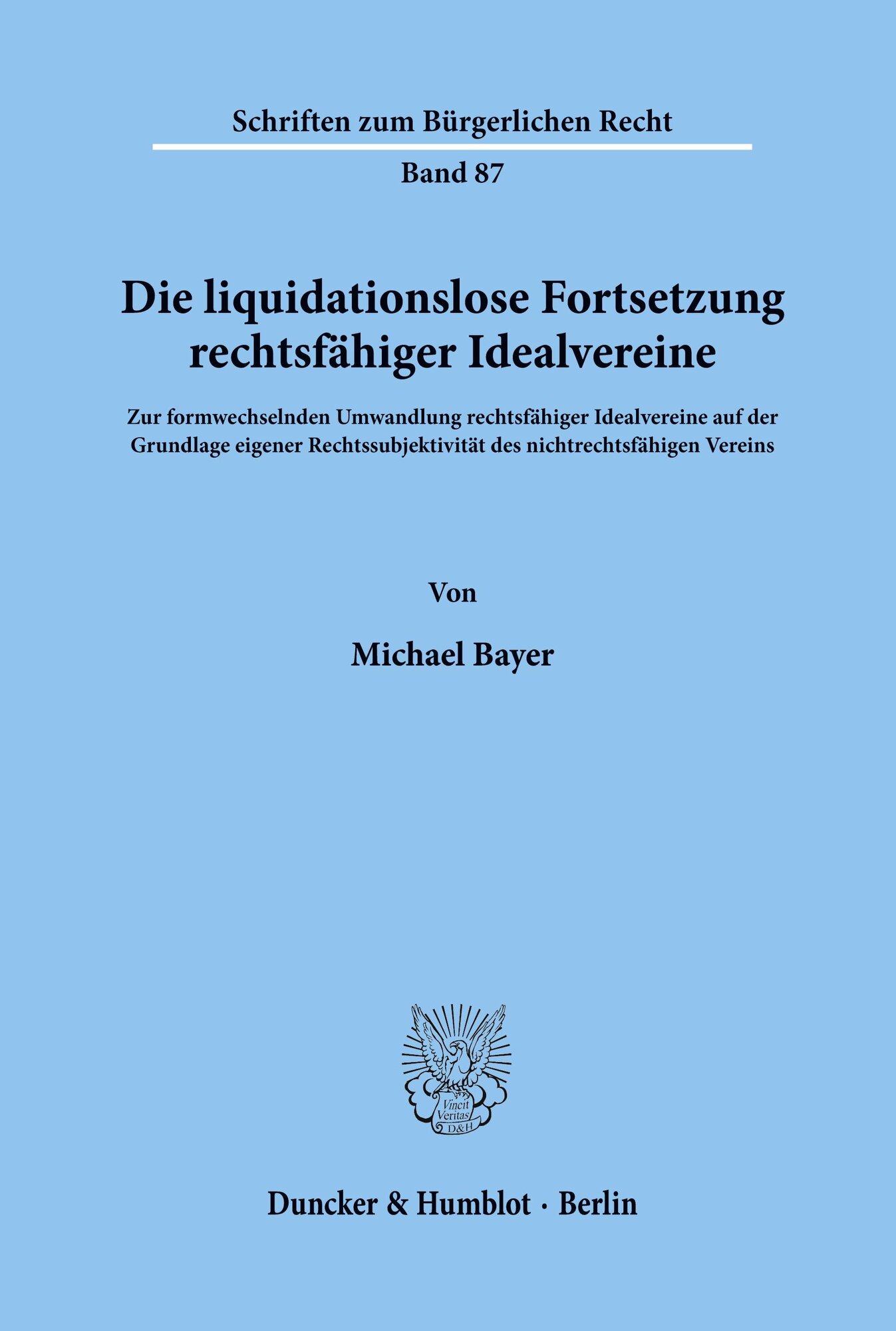 Die liquidationslose Fortsetzung rechtsfähiger Idealvereine. (německy)