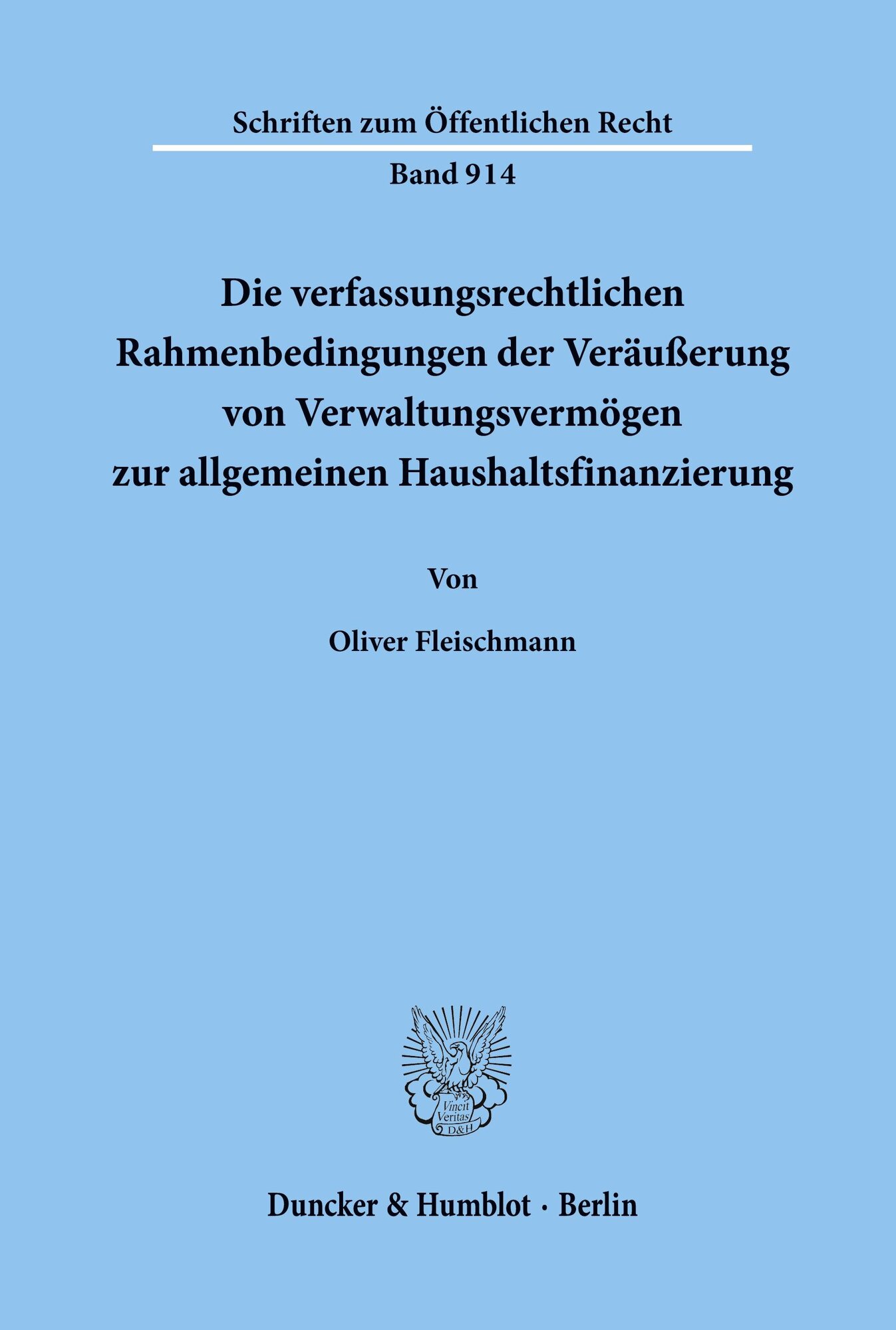 Die verfassungsrechtlichen Rahmenbedingungen der Veräußerung von Verwaltungsvermögen zur allgemeinen Haushaltsfinanzierung. (německy)