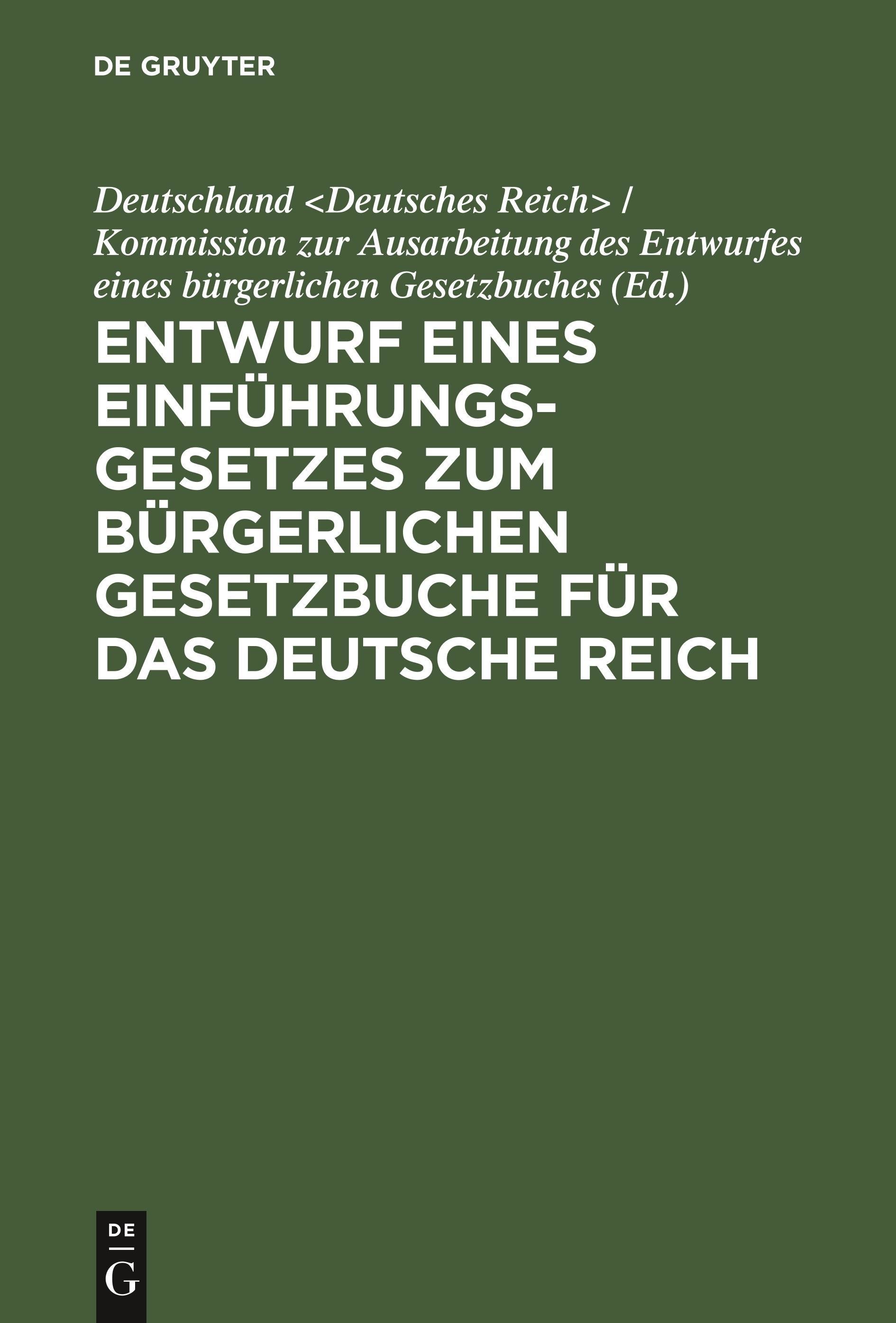 Entwurf eines Einführungsgesetzes zum Bürgerlichen Gesetzbuche für das Deutsche Reich