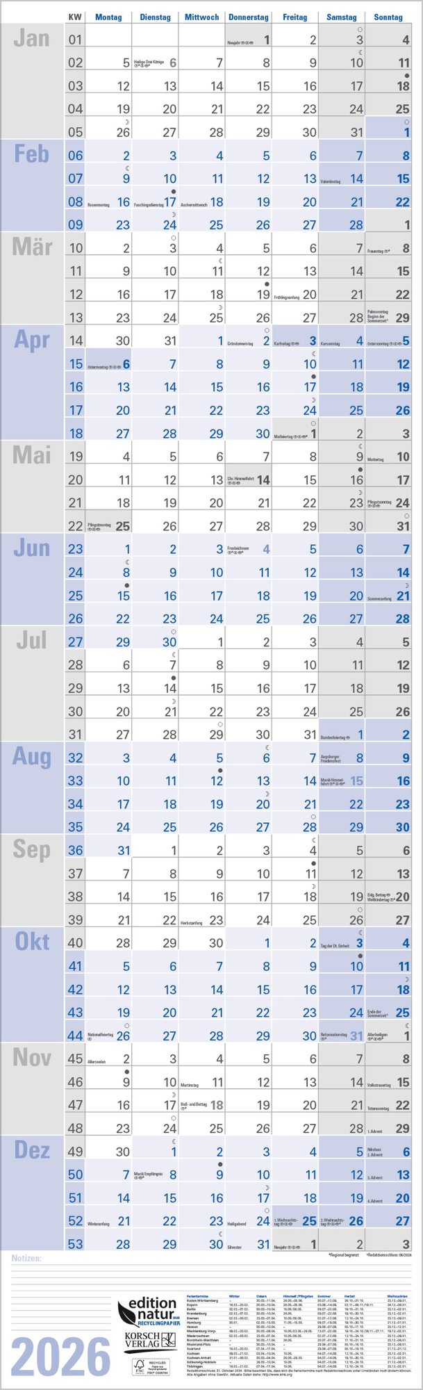 Wandplaner hoch Recyclingpapier Edition Natur 2026 (německy)